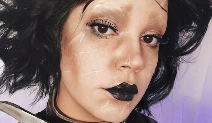 Ruthmarie is bringing another character to the forefront, Edward Scissorhands! However her version is suited for a lady, Edwina! You can see the vintage nods she brings to this look with her pout and brows.